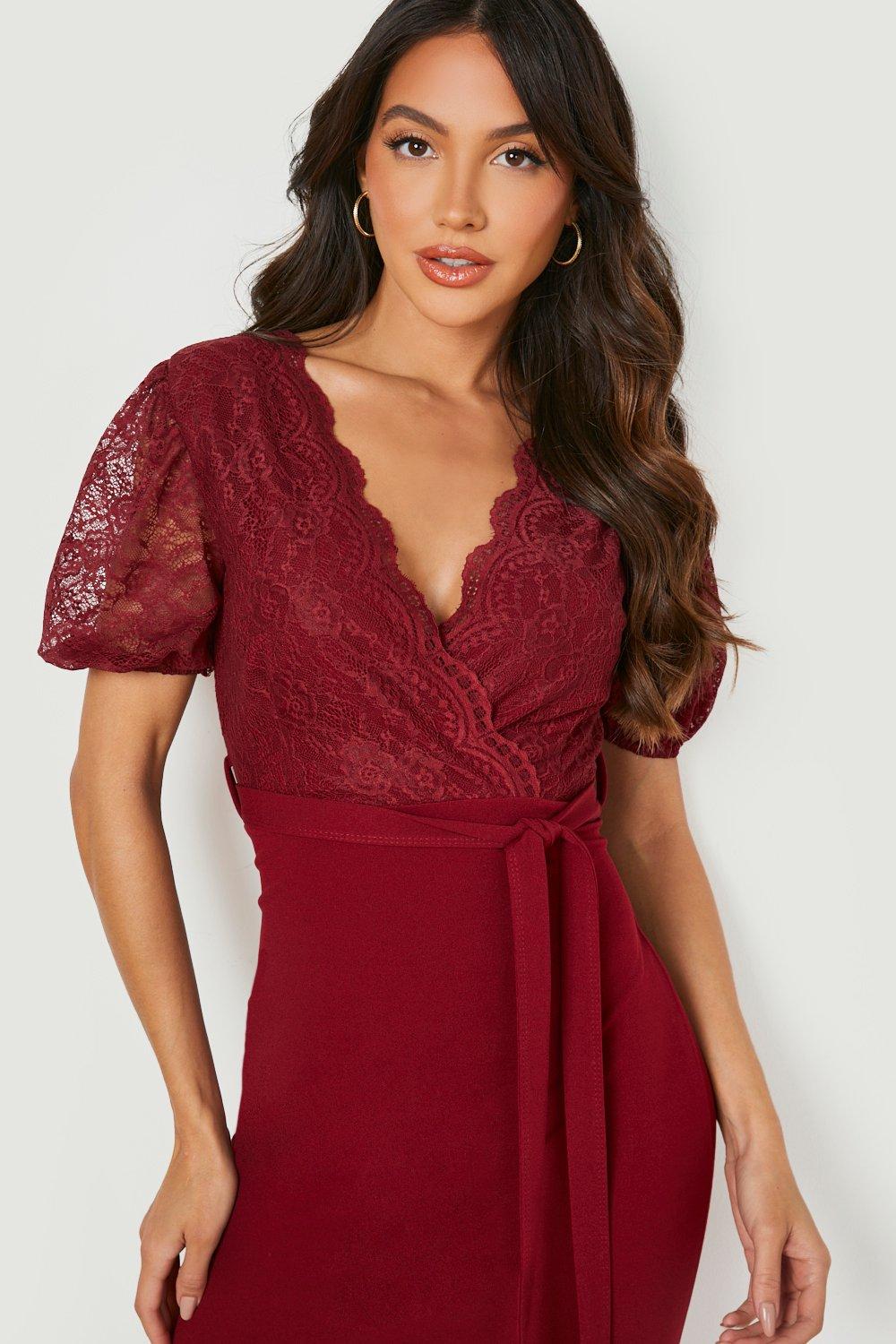 Product id: Boohoo burgundy deals lace dress